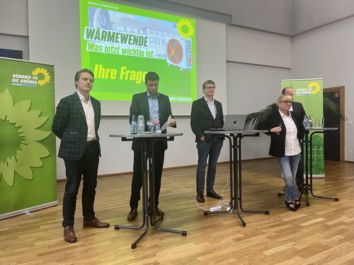 Grund genug für Schwabachs Grüne, sich dem Mega-Projekt mit Hilfe von Praktikern und mit Hilfe der Wissenschaft anzunähern. Deshalb standen im Evangelischen Haus neben dem heimischen Bundestagsabgeordneten Sascha Müller der neue Stadtwerke-Leiter René Lukas, der Energieberater Tom Kirsten und der Forschungskoordinator Dr. Thomas Pircher vom Energie-Campus Nürnberg Rede und Antwort.