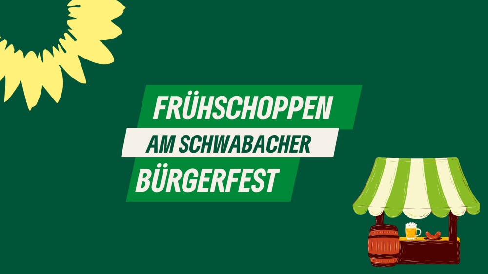 Wir Schwabacher Grünen laden herzlich ein, mit uns beim Bürgerfest Frühschoppen am Sonntag, den 21. Juli, zu feiern. Von 11 bis 13 Uhr haben wir einen Tisch vor dem Rathaus reserviert.