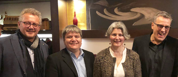 Die Protagonisten des Abends: Eckhard Göll, Stefan Schmidt MdB, OB-Kandidatin Christine Krieg, Ulrich Lindner. (Foto: Roland Oeser)