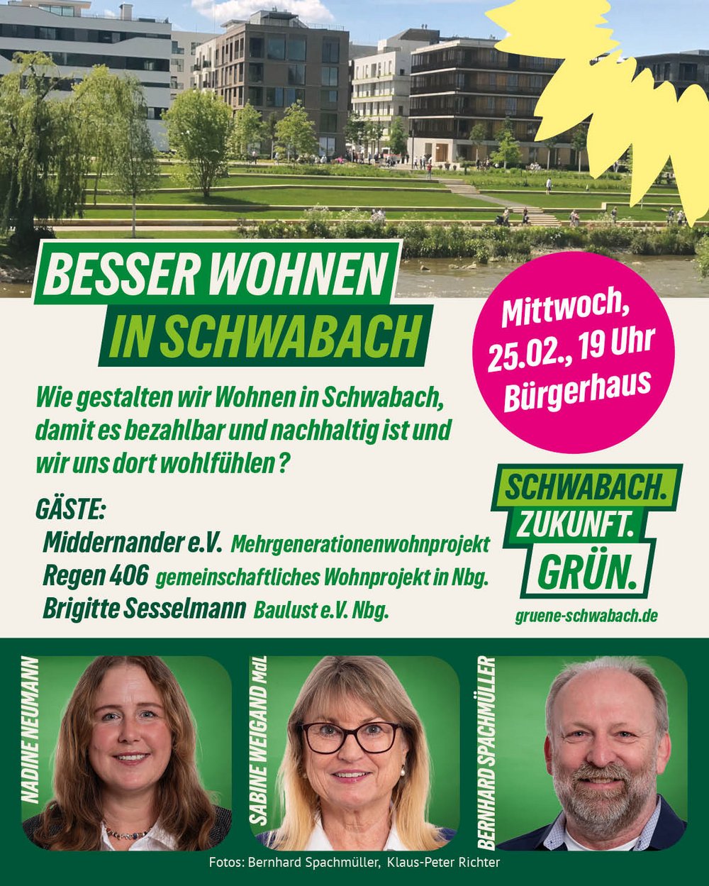 Wie können wir das Wohnen in Schwabach so gestalten, dass es erschwinglich, nachhaltig und auch noch so gestaltet ist, dass wir uns in unserem Umfeld möglichst wohlfühlen? Dieser Frage widmet sich die Veranstaltung „Besser Wohnen in Schwabach“. Am Mittwoch, 25.Februar 2026, 19 Uhr, ist jeder herzlich eingeladen, im Bürgerhaus Schwabach zusammen mit Expertinnen und Experten am Beispiel eines konkreten Baugebiets Ideen für gelingendes Wohnen und Bauen zu entwickeln. Der Eintritt ist frei.